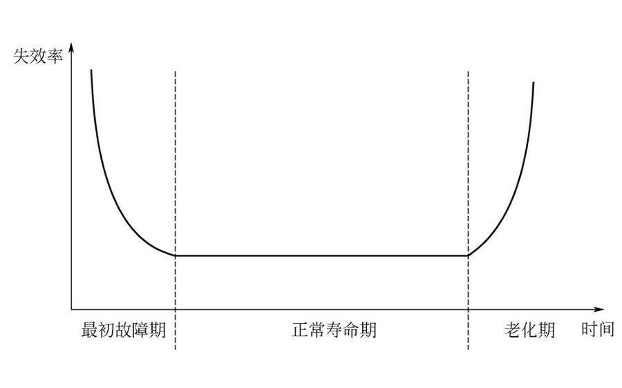 (1)早期失效設備在最初故障期發生的失效為早期失效,失效率由大減小。這是因為生產出的設備中有一些存在生產缺陷,隨著它們不斷的暴露出來,失效率就逐漸下降。